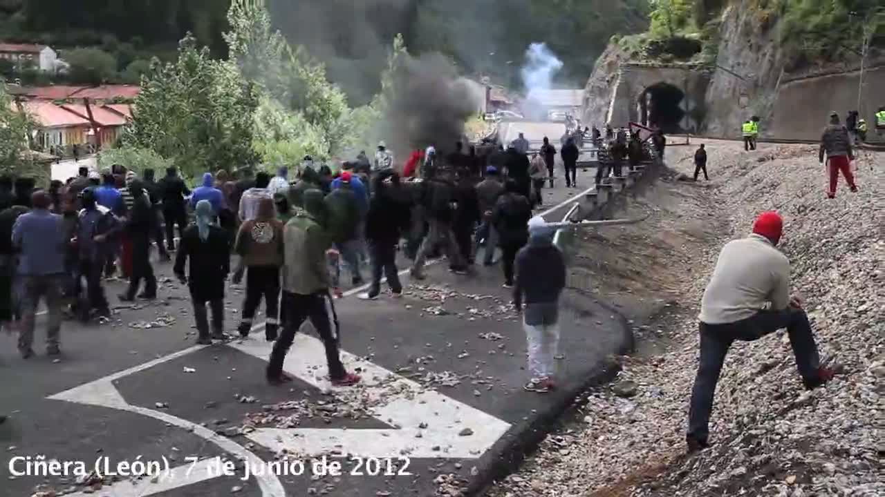 7 июня в Испании протестующие шахтеры перекрыли крупную автотрассу на севере страны. Сотни манифестантов выстроили и подожгли баррикады из автомобильных шин — черный дым от пожара был виден за несколько километров. Полиция попыталась разогнать толпу слезоточивым газом и резиновыми пулями, однако те применили тактику партизанской борьбы. Активисты, чьи лица были скрыты масками, спрятались в окрестных лесах и оттуда обстреливали полицейских самодельными ракетами. Поводом для протестов стало решение правительства резко сократить субсидии на добычу угля из госбюджета. Горняки считают, что это приведет к повсеместным закрытиям шахт и массовым увольнениям. часть 1: http://krasnoe.tv/node/14981 часть 2: http://krasnoe.tv/node/14980 часть 3: http://krasnoe.tv/node/15031 часть 4: http://krasnoe.tv/node/15033